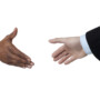 Two business people about to hand shake isolated on a white surface